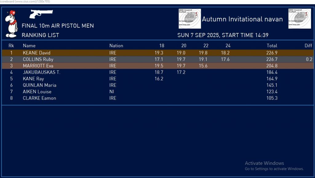 Ruby Collins from Drogheda and David Keane from Trim, 2 shots to battle for Gold and Silver. After